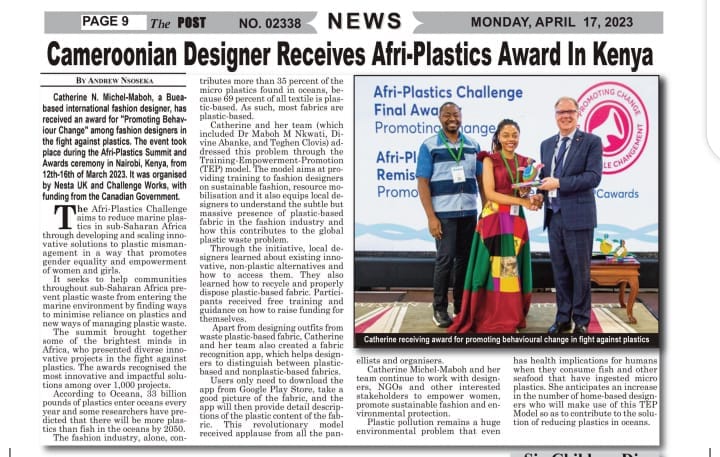 On the 16th of March, we were internationally recognized for the amazing strides in reducing plastics in fashion through the TEP Model(A Training Empowerment Promotion Model).