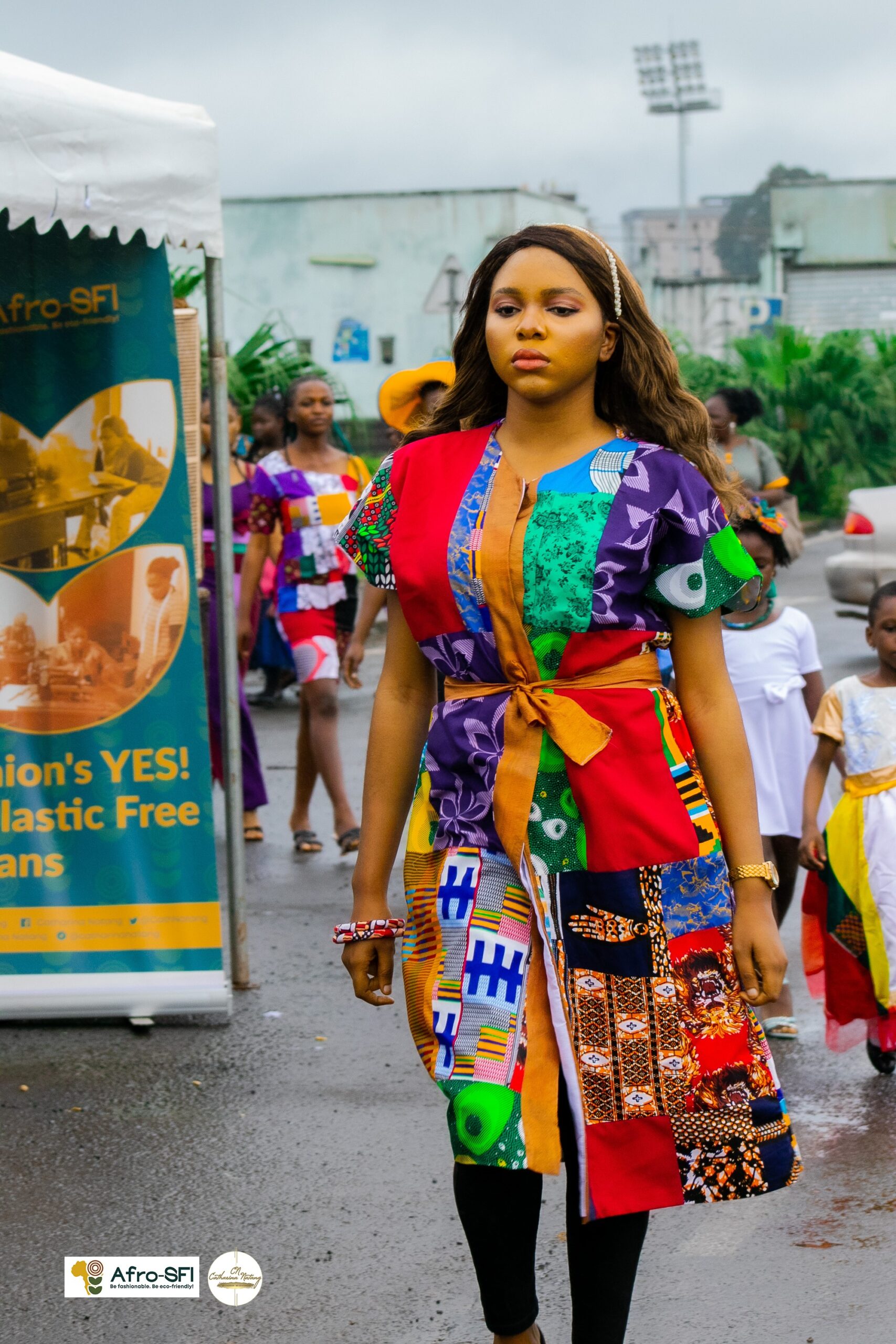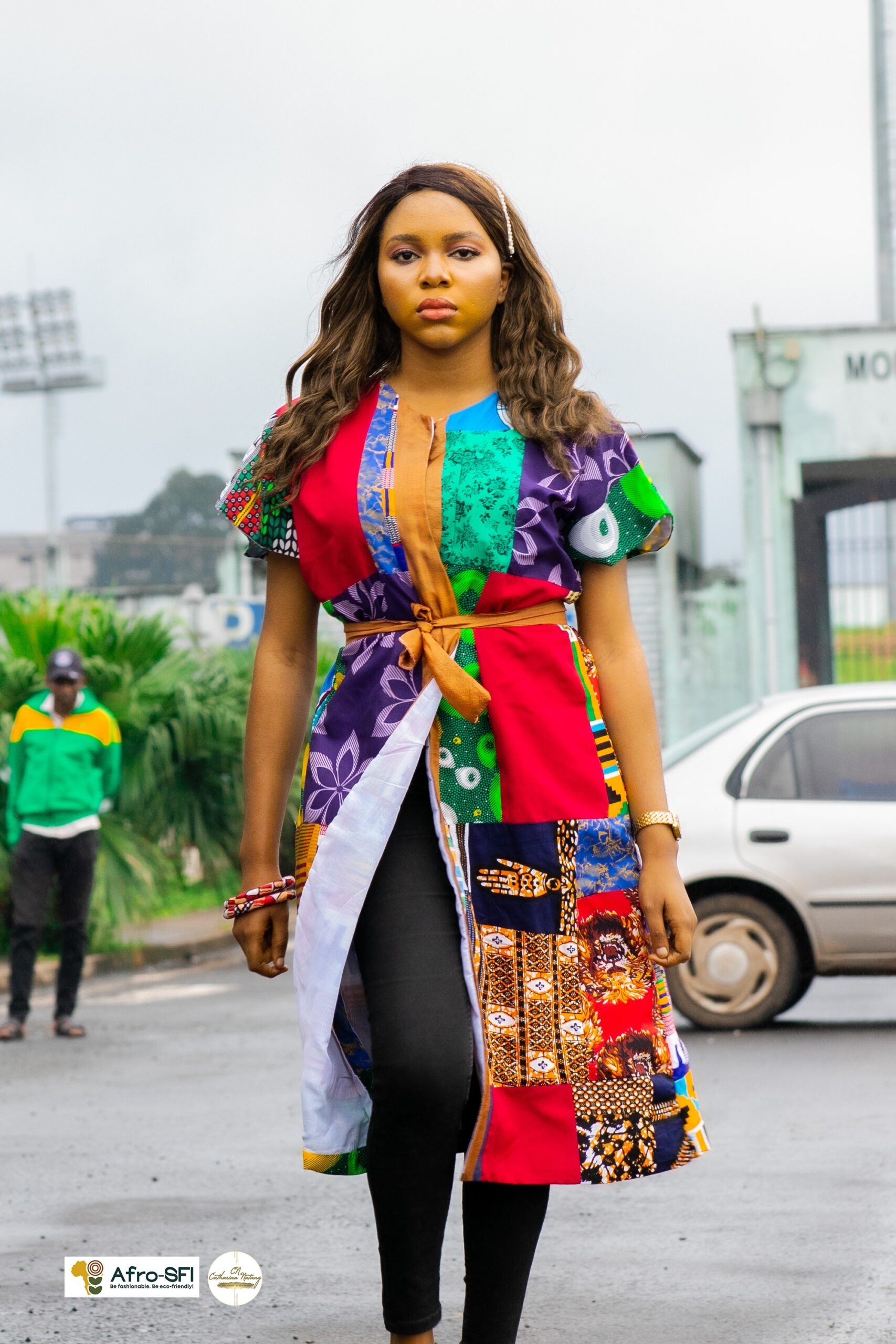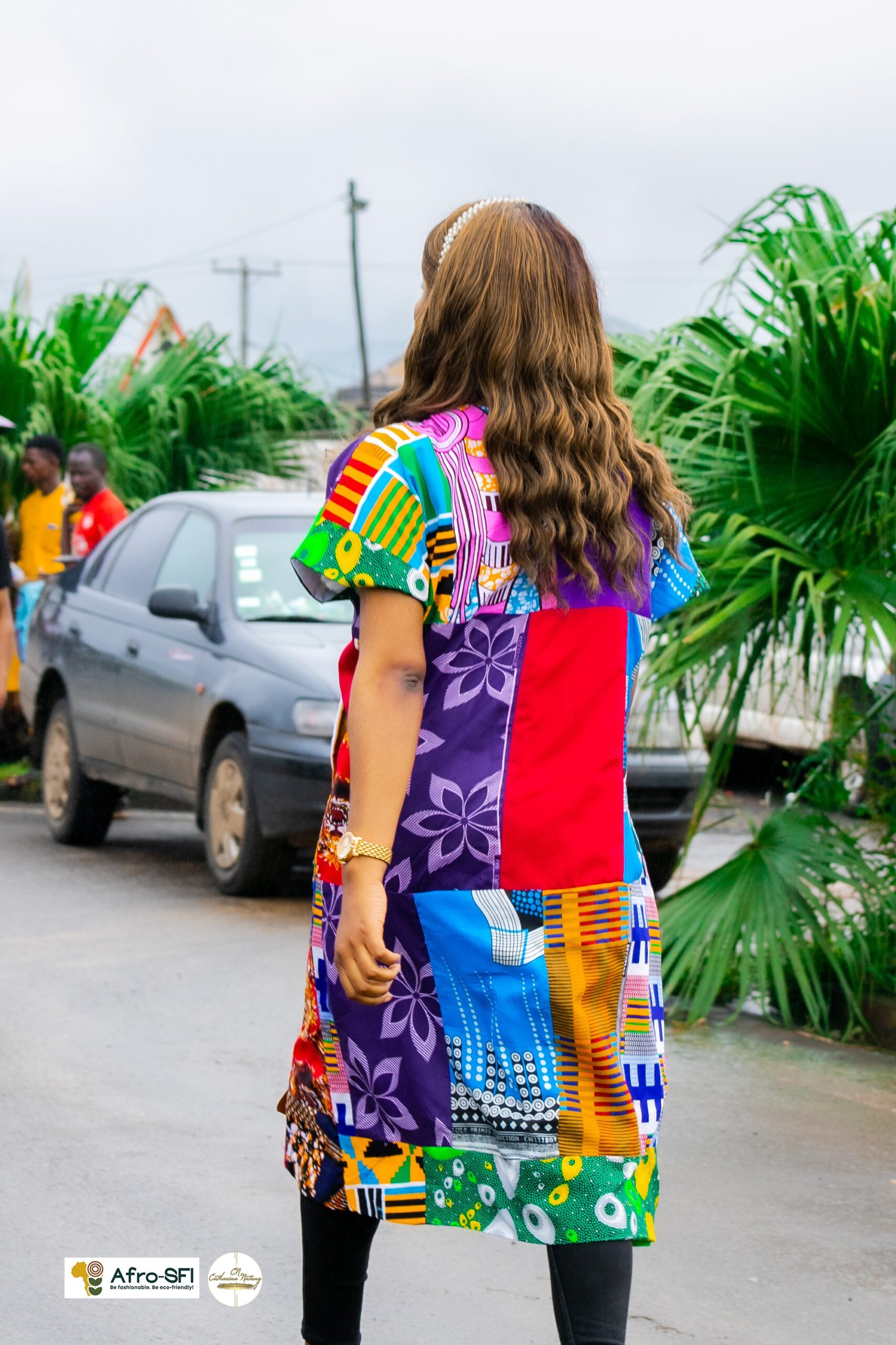 NB: This outfit is made from waste plastic-based fabric. Ordering this same attire will only give an option for the same design but not the same piece of fabric or color because the waste material might not be available.
